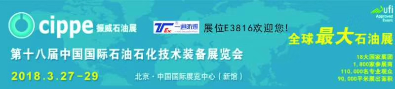 第18屆中國(guó)國(guó)際石油石化技術(shù)裝備展覽會(huì)于2018年3月27-29日在北京新國(guó)展舉辦,一通防爆電氣有限公司(中國(guó) 南陽(yáng))在E3館E3816展位,恭候您的光臨!