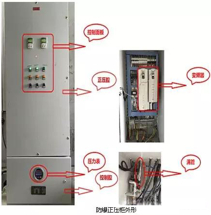 防爆正壓柜通過防爆控制箱內的智能控制系統、壓力控制系統將潔凈安全的壓縮空氣引入正壓柜,使正壓腔內形成微正壓,阻止外界危險氣體、粉塵的進入,達到防爆的目的。防爆正壓柜具有智能集中控制、參數顯示和設置、自動換氣、延時自動供電、失壓補氣、故障報警及自動切斷電源等功能。