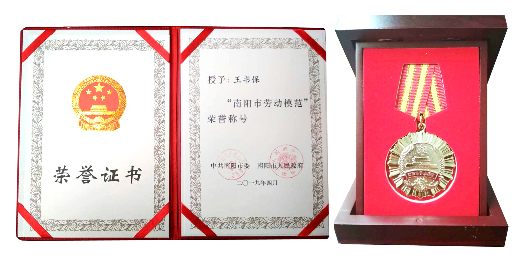 南陽市委、市政府授予王書保“南陽市勞動(dòng)模范”榮譽(yù)證書